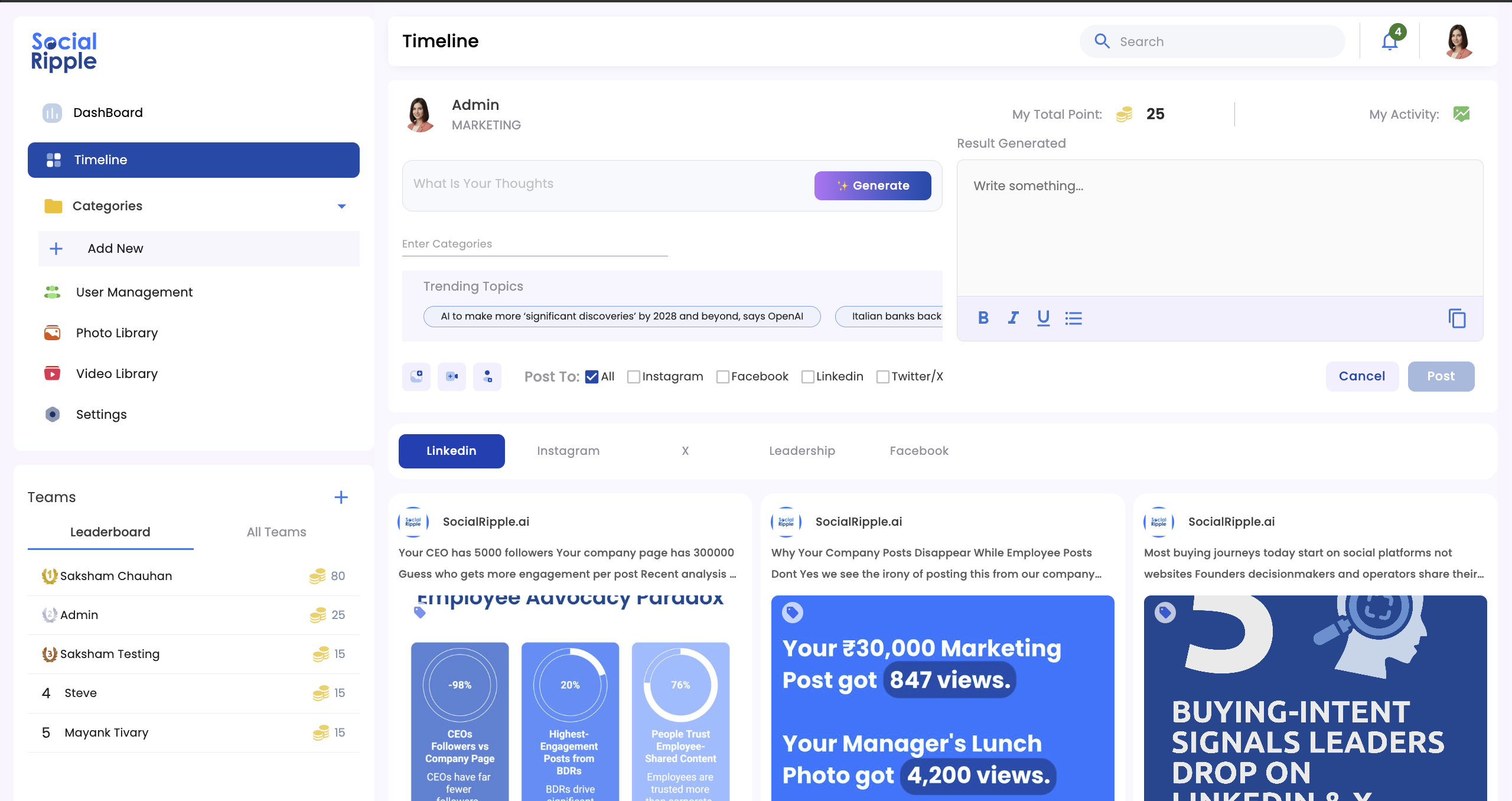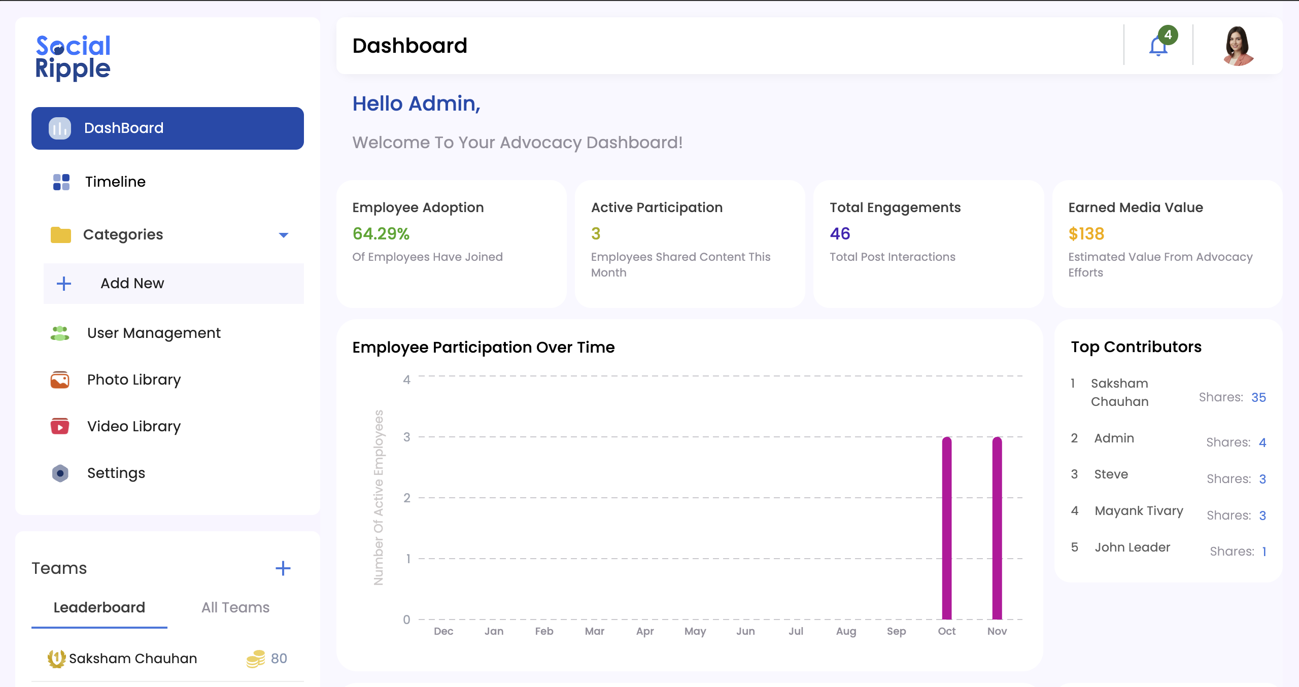 Transform your employee advocacy with SocialRipple. Empower your team with pre-approved content, track real-time engagement, and amplify your brand reach effortlessly.